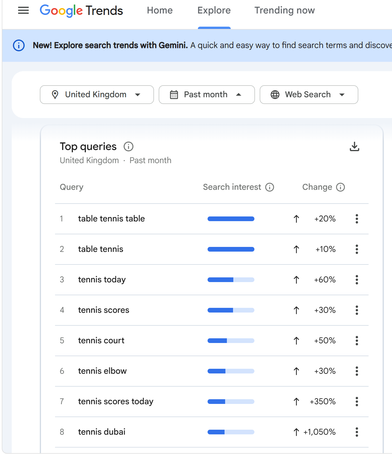 Using (Google Trends, 2026) the search for ‘Tennis’, ranks ‘tennis today’ 3rd in queries in the past month. Explore – Google Trends (5th March 2026)